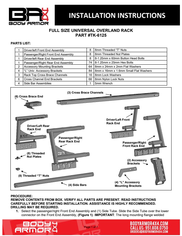 Body Armor TK-6125 Full Size Universal Overland Rack