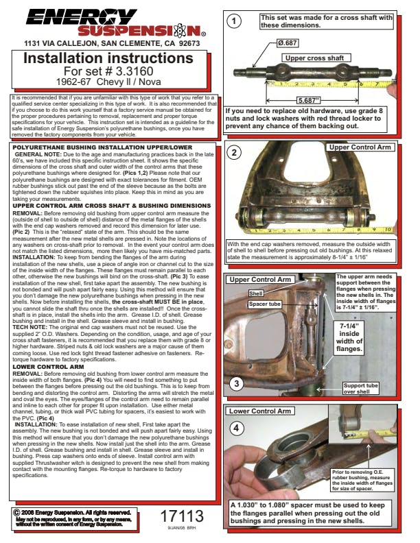 For both front and rear of suspensions on cars, trucks and SUVs. Made of Energy's Hyper-Flex performance polyurethane for optimum performance and durability. Maintains proper alignment under extreme conditions on the street, track or off-road. Improves vehicle handling, cornering and overall control. Full floating for smoother, efficient operation. Outlasts and outperforms rubber.