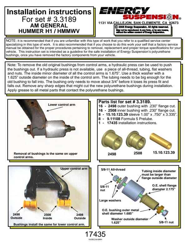 For both front and rear of suspensions on cars, trucks and SUVs. Made of Energy's Hyper-Flex performance polyurethane for optimum performance and durability. Maintains proper alignment under extreme conditions on the street, track or off-road. Improves vehicle handling, cornering and overall control. Full floating for smoother, efficient operation. Outlasts and outperforms rubber.