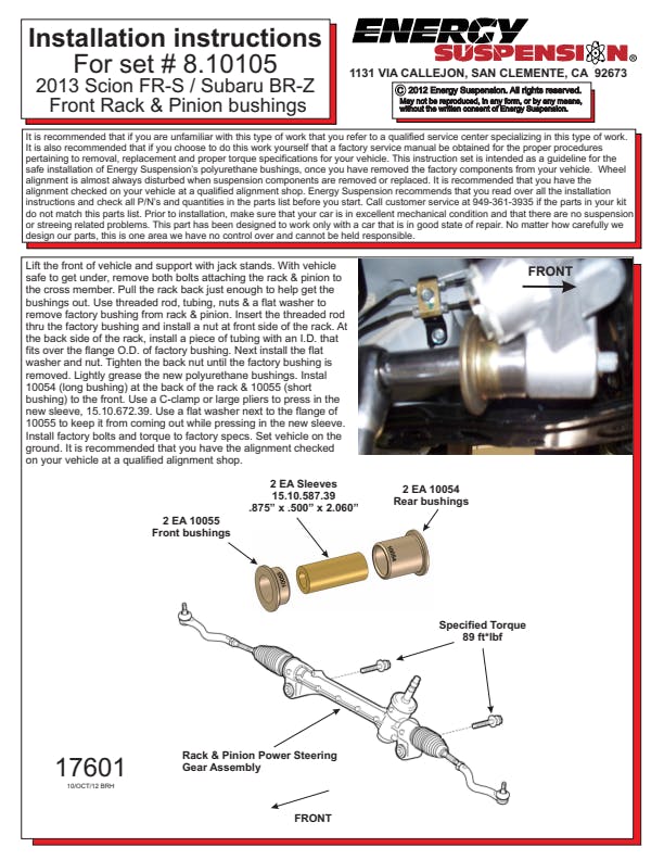 Energy Suspension continues to be the World leader in performance polyurethane suspension technology. Dedication to manufacturing and developing superior products has established Energy Suspension as the most asked-for name in performance polyurethane components today. The complex and diverse nature of Energy's proprietary Hyper-Flex(TM) material requires constant attention to developing the optimum polyurethane formulas. This devotion has produced the quality components that our customers continue to demand. Providing problem-solving solutions with applications for the most popular vehicles, paired with our Limited warranty and superb customer support, Energy Suspension is your first quality choice in performance polyurethane suspension components.